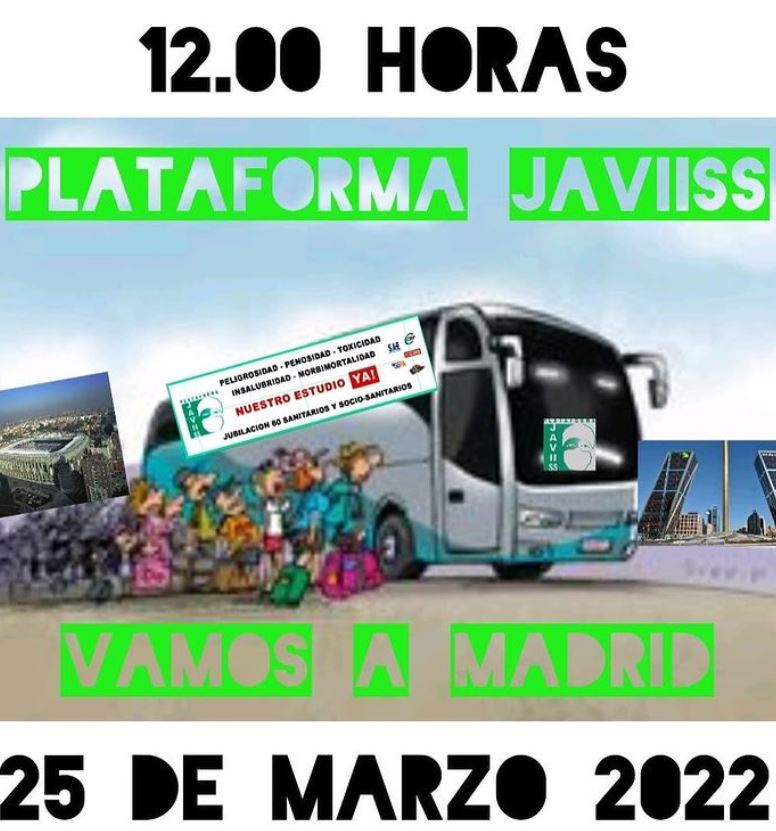 El próximo viernes 25 de marzo tendrá lugar la primera manifestación impulsada por la Plataforma JAVIISS (Jubilación Anticipada Voluntaria en Instituciones Sanitarias y Sociosanitarias) una organización formada por trabajadores de diferentes instituciones sanitarias que llama al sector sanitario y sociosanitario a concentrarse para pedir la anticipación de la edad de jubilación voluntaria en estos trabajadores. Con esta manifestación pretenden que el Gobierno permita que estos profesionales se puedan jubilar a los 60 años sin penalización económica, atendiendo a razones de penosidad, peligrosidad, toxicidad e insalubridad de las condiciones del trabajo, así como una elevada morbimortalidad en el sector y a la merma en sus capacidades físicas y psíquicas para desarrollar la actividad con edades avanzadas.